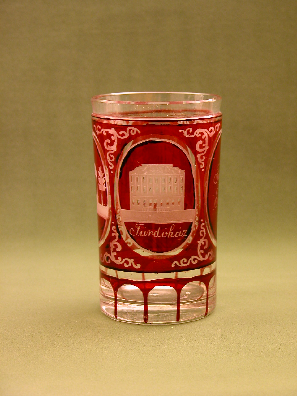 Bath-glass representing the spa-building; outlined: „The Aluminous Bath of Parád”